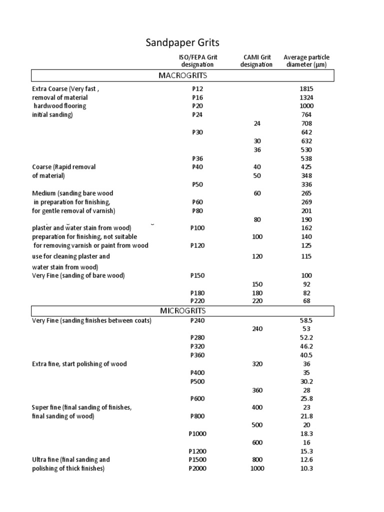 Sandpaper Grit Chart Wood Products Procedural Knowledge